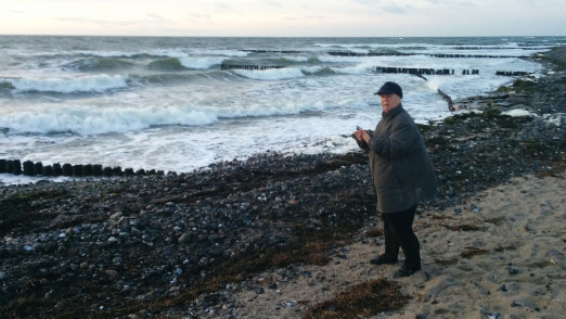 Anfahrt über die Rügenbrücke das Hotel an der Seebrücke der Speisesaal mit Tresen beim Frühstück mit Boddenblick ein Leuchtturm von Kap Arkona die beiden anderen Leuchttürme Besichtigung des Leuchtfeuers Besichtigung einer Boje Strand und Hafen von Vitt Infozentrum am Königsstuhl Blick vom Königsstuhl zu den Kreidefelsen die wilde Ostsee bei Dranske